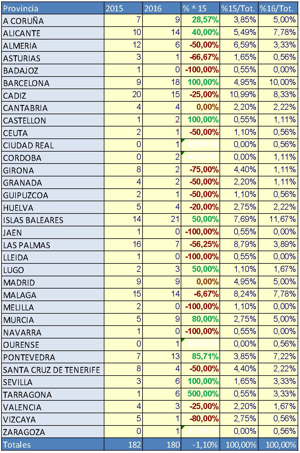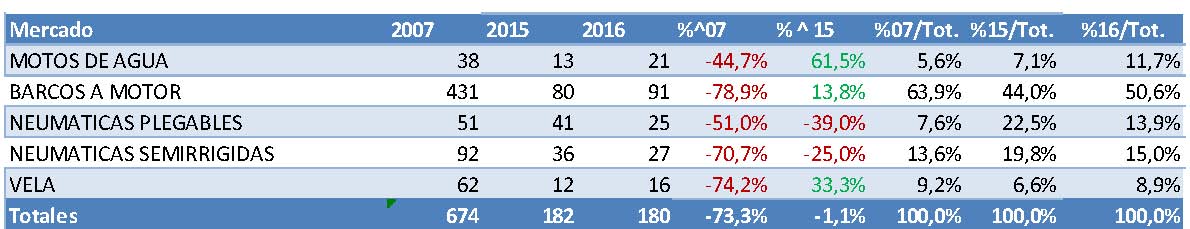 Son los datos recogidos en el Informe del mercado de embarcaciones de recreo (enero 2016), editado por ANEN a partir de los datos facilitados por la Dirección General de la Marina Mercante.