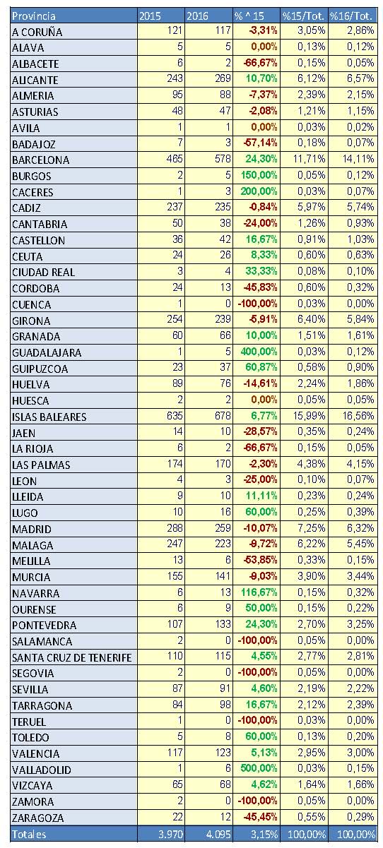 Son los datos que se desprenden del Informe del Mercado de Embarcaciones de recreo (enero-agosto) 2016, editado por ANEN con el análisis de los datos facilitados por la Dirección General de la Marina Mercante.