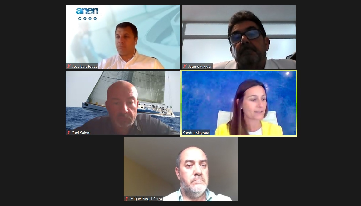 Han participado como panelistas en este Webinar: Jaume Vaquer, Presidente de AENIB; Toni Salom, Presidente del Balearic Marine Cluster; Miguel Ángel Serra, Asesor fiscal de ANEN y Socio del Despacho Albors Galiano Portales; Sandra Mayrata, Abogada del Despacho Pomar & Martos, y José Luis Fayos, Asesor técnico de ANEN, quien ha realizado la presentación y análisis del Nuevo Pliego sobre reparación y mantenimiento de la Autoridad Portuaria de Baleares.