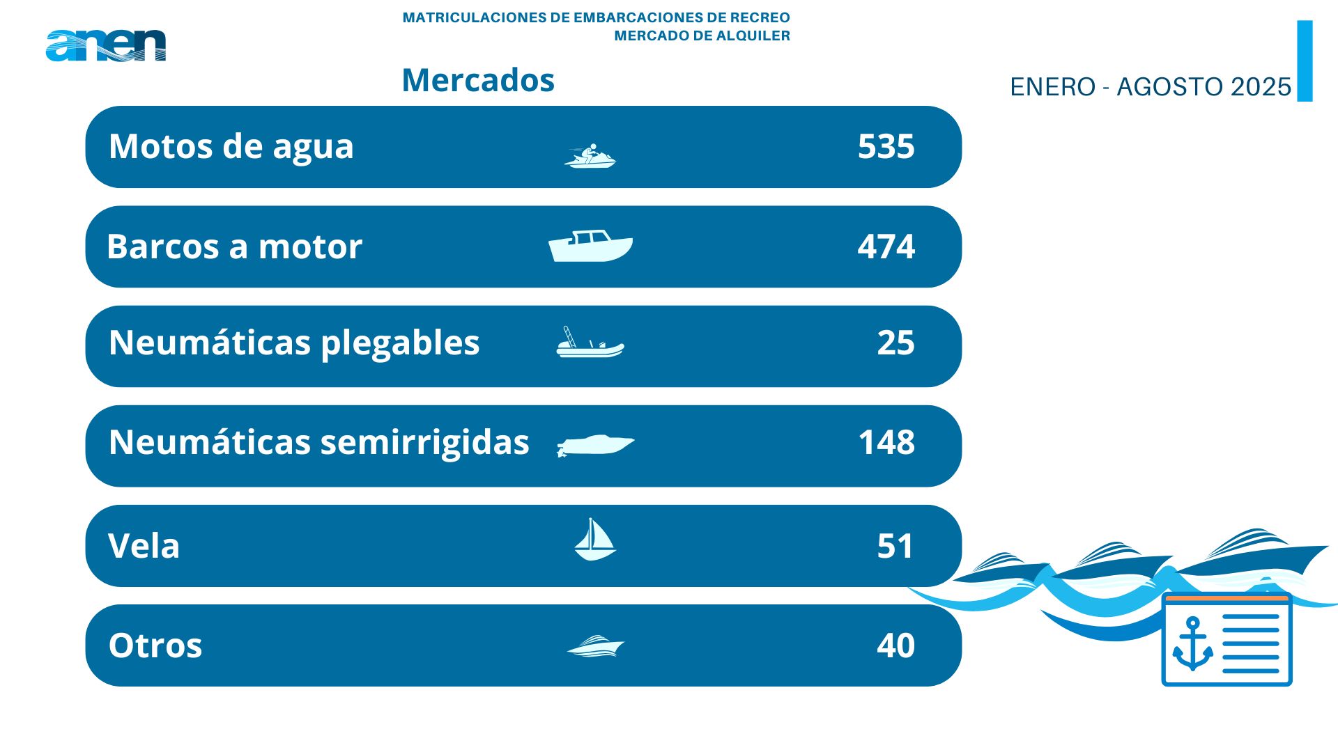 Matriculaciones de embarcaciones de recreo_enero_agosto 2025_5 4 de septiembre de 2025| ¡Comparte este contenido en tus redes! FacebookTwitterLinkedInWhatsAppTelegramPinterestEmail